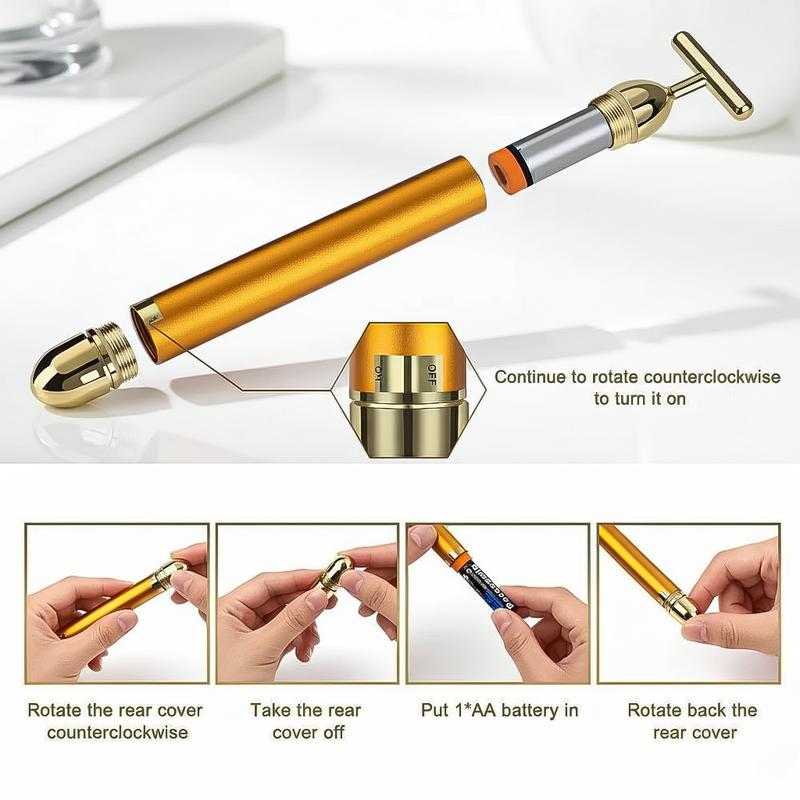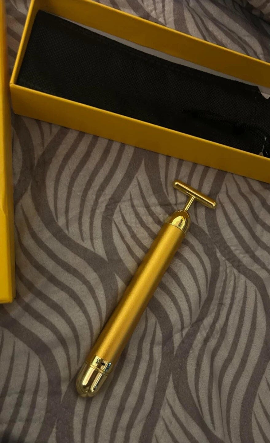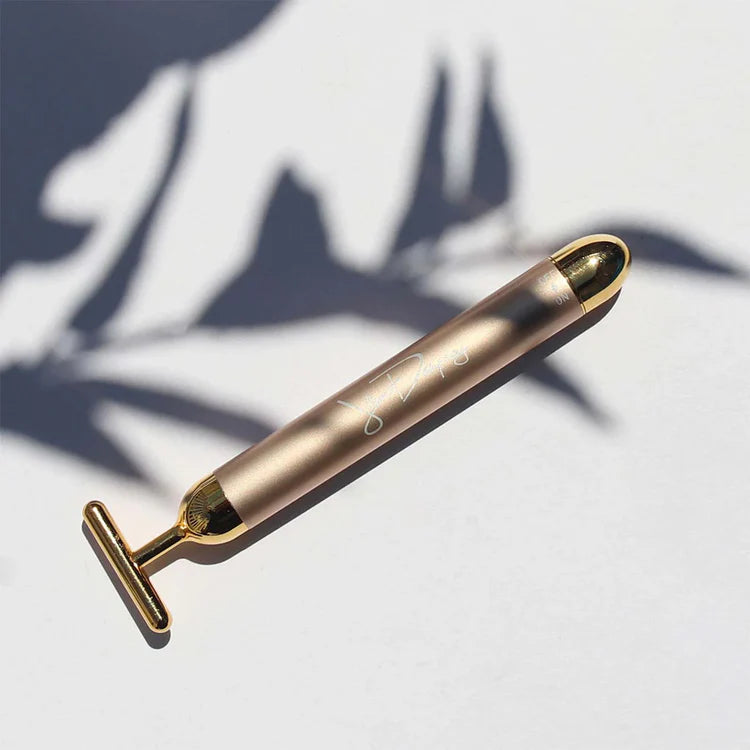 A vibrating sculpting bar massager helps stimulate the skin and facial muscles through gentle micro-vibrations. These vibrations support lymphatic drainage, which can reduce under-eye puffiness, release built-up tension, and improve facial circulation.